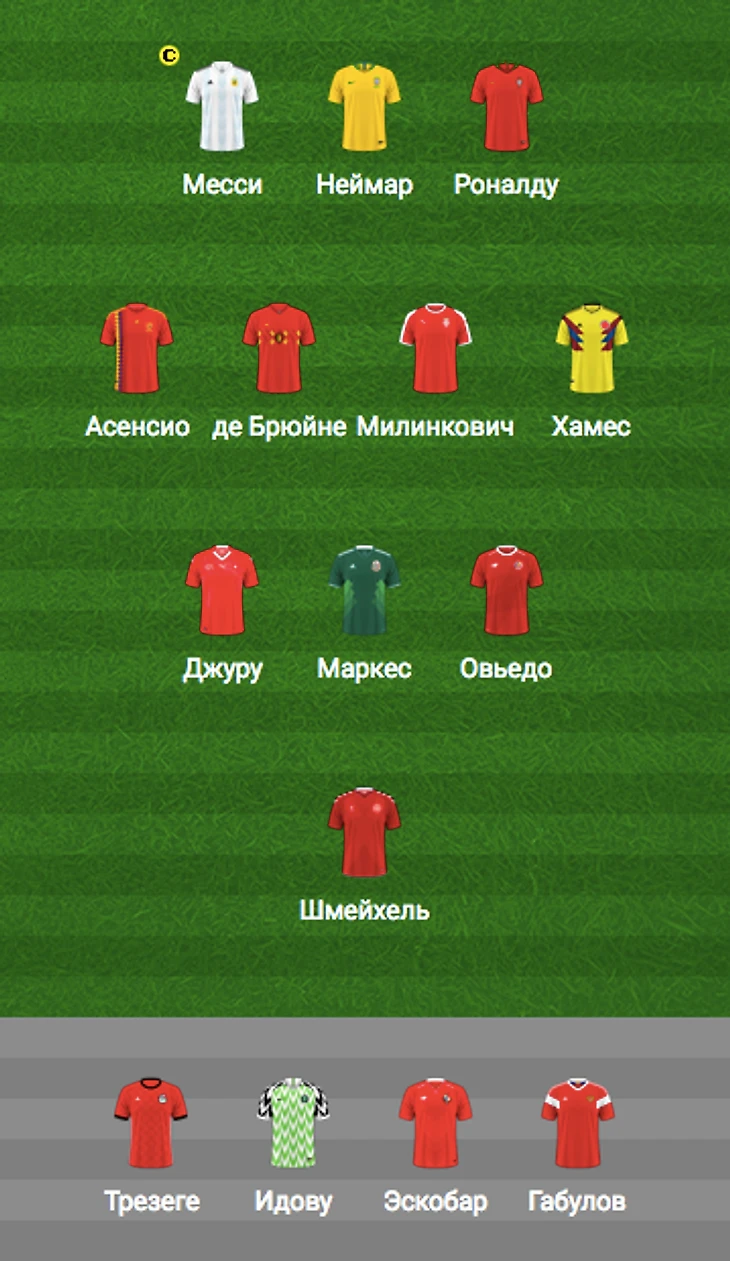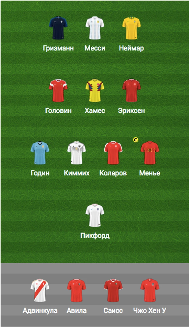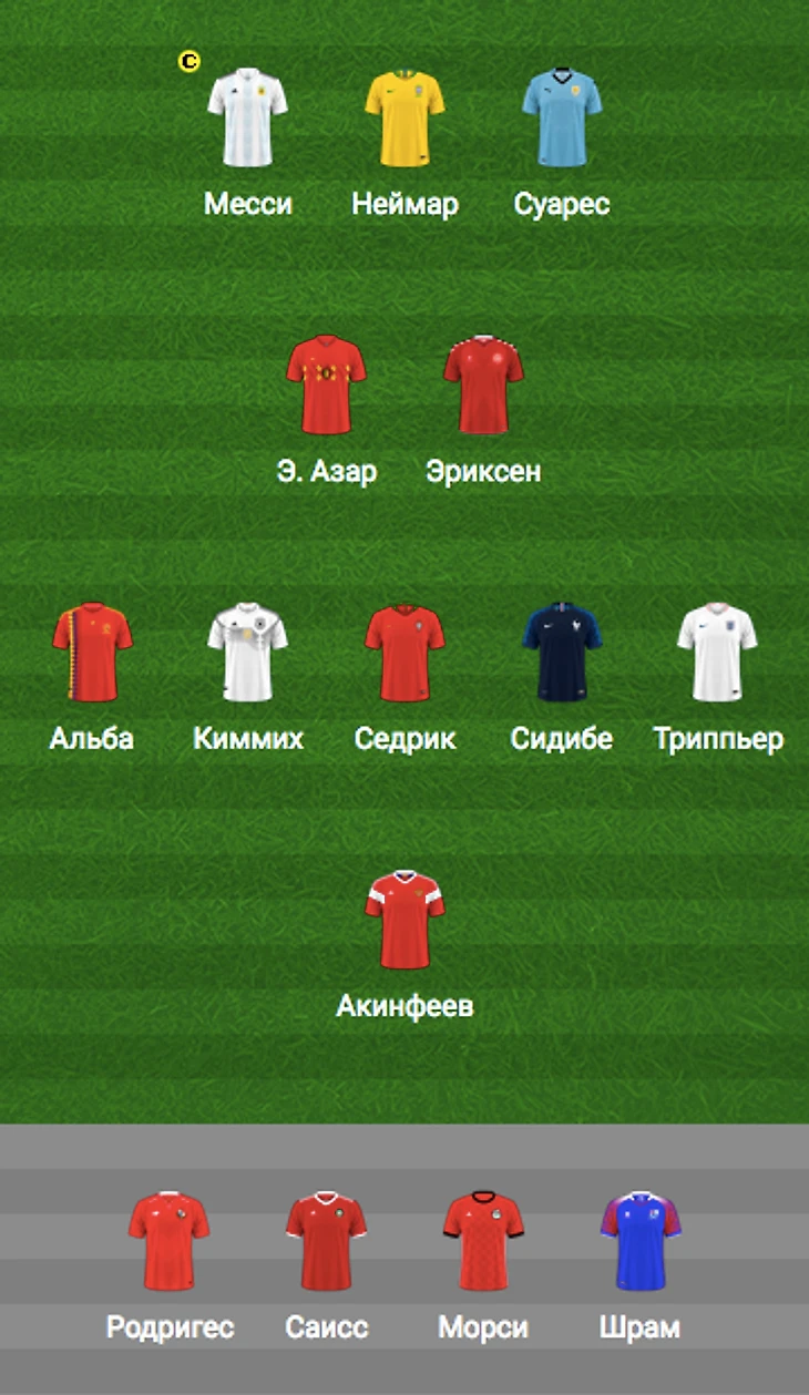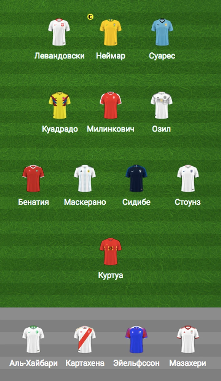 Необычный формат "лишь один из сборной" делает все еще веселее, чем обычно. Кто тебе дороже - мама или папа, Куртуа или Азар? Мне, пожалуй, предпочтительнее дылда из "Челси". По нападению все проще - почти всегда в таких фэнтези все набирают Неймаров Мессивичей, но, как назло, в группе за них обычно отдуваются сентурионы с павонами. Впрочем, кто мы такие, чтобы идти наперекор толпе? Тем более этих сентурионов столько, что и не получится угадать. Выберем вариант понадежнее.