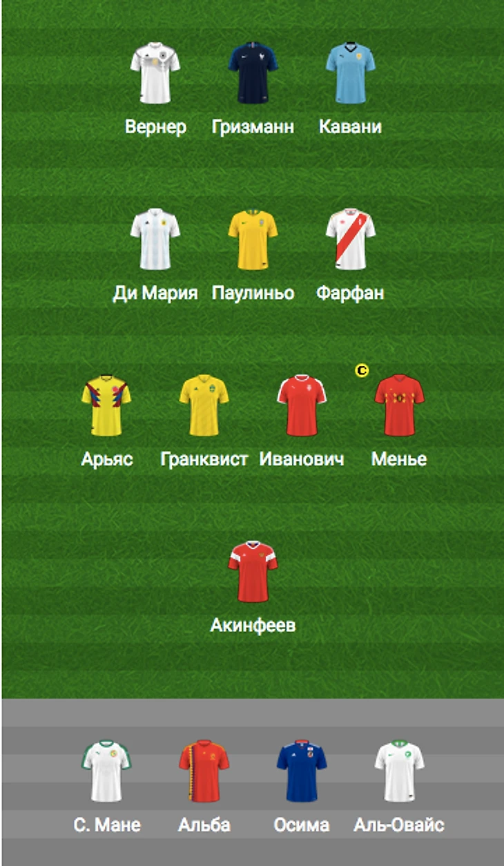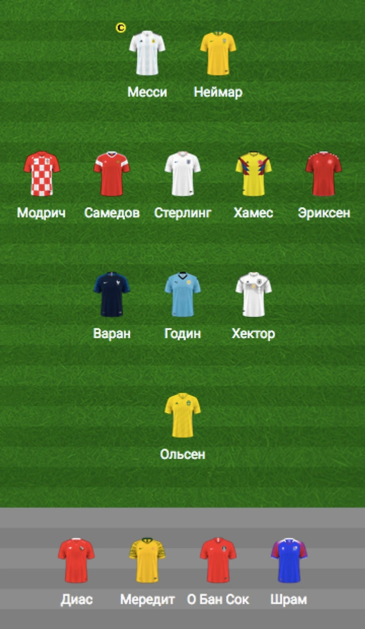 C Месси и Неймаром вроде все ясно, Самедов - чуть ли не самый эффективный атакующий полузащитник в сборной Черчесова, думаю, он пригодится даже если в итоге будет выходить на замену вместо Миранчука. Модрич в сборной Хорватии играет гораздо выше, чем в "Реале", Эриксен и Хамес - лучшие атакующие полузащитники сборных, у которых не очень сложные соперники (хотя я совру, если скажу что знаю что-то про защиту Перу). Стерлинг мощно прибавил у Гвардиолы.