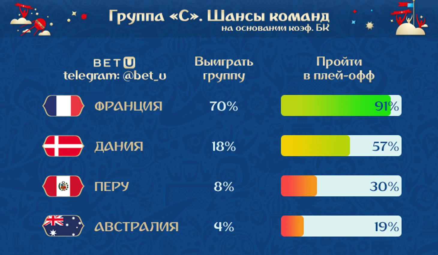 Серия выпусков к ЧМ-2018, посвященная шансам сборных на победы в своих группах и проход в плей-офф. Новый день – новый выпуск! Сегодня – группа «C» с Францией, Австралией, Перу и Данией.