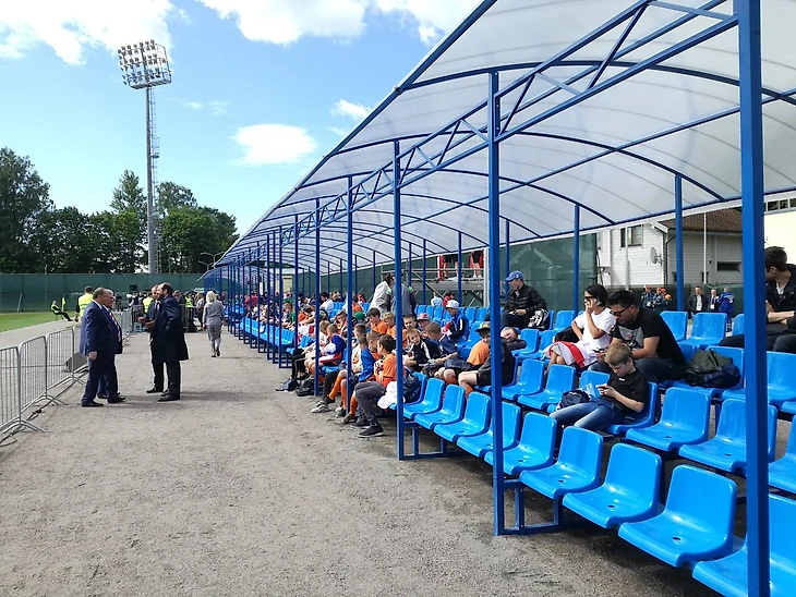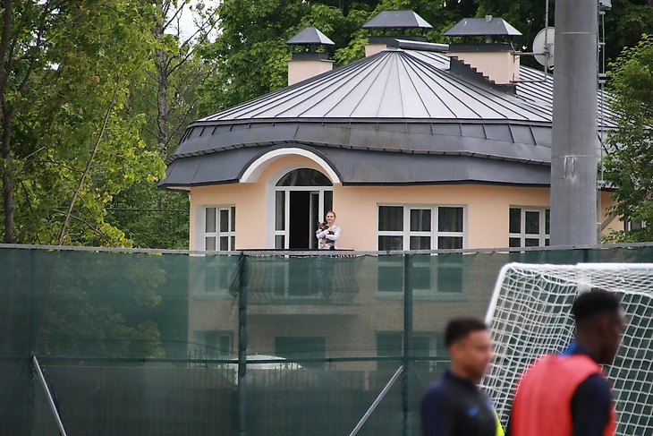 За тренировкой наблюдали местные жители, чьи окна выходят прямо на поле.