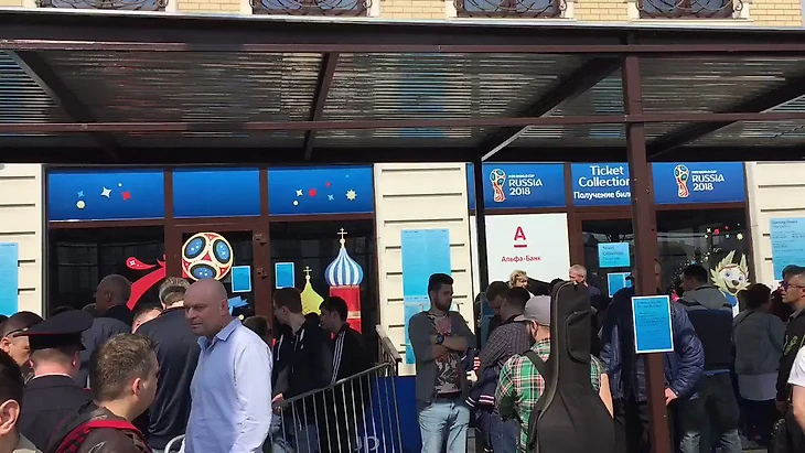 Билетные центры находятся во всех городах Чемпионата мира. Найти их в Интернете не составляет труда, равно как и часы их работы. Также есть стойки во всех аэропортах городов Чемпионата мира, где тоже можно распечатать купленные билеты. Рекомендуется не затягивать с их получением, потому что очередь в таких местах явление довольно частое. В Москве я бы простоял за билетом часа полтора, но у меня была с собой карта, на которую я их брал. Все распечатал терминал самообслуживание, очередь в который заняла минут двадцать.