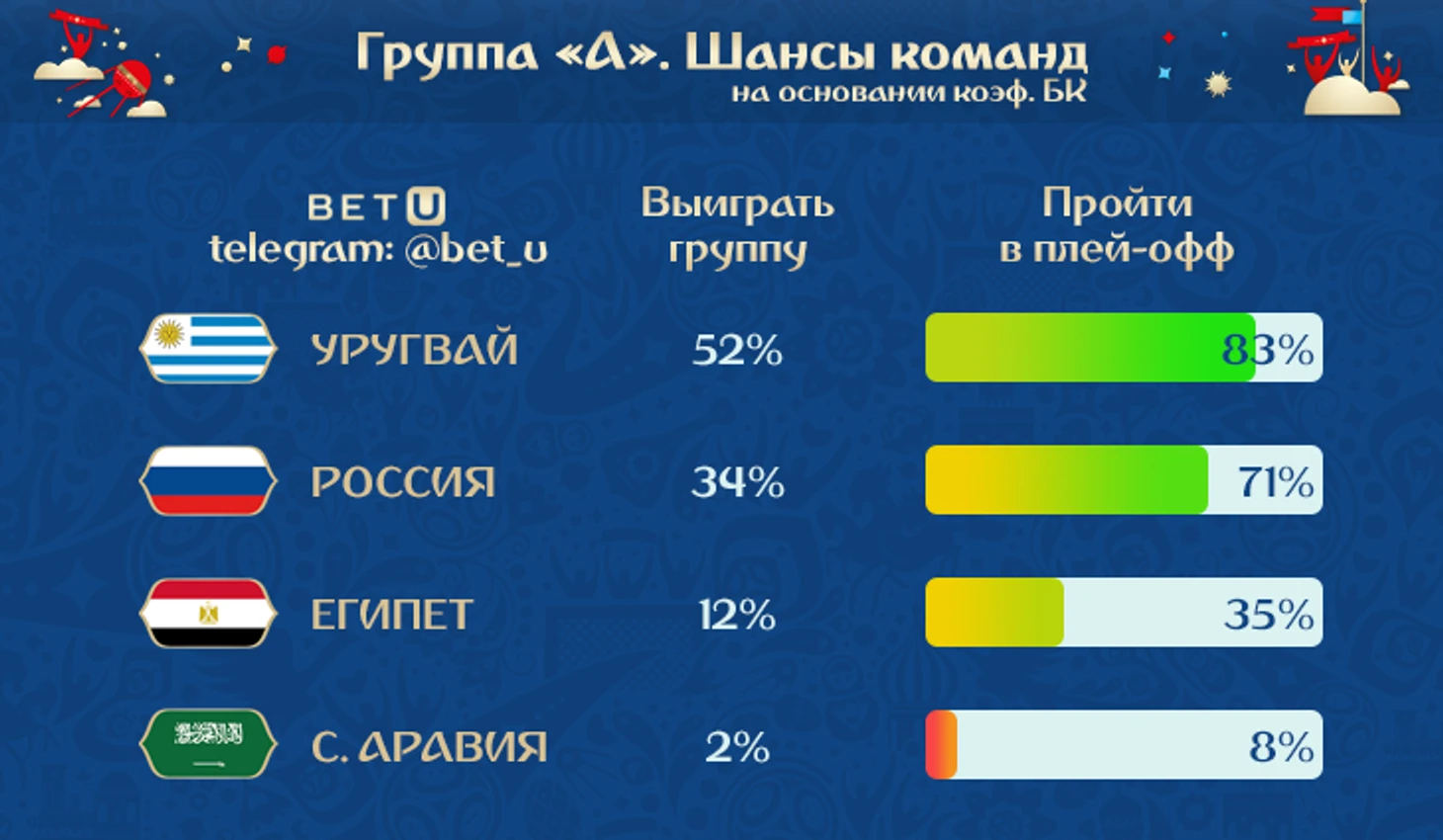 Серия выпусков к ЧМ-2018, посвященная шансам сборных на победы в своих группах и проход в плей-офф. Новый день – новый выпуск! Сегодня – группа «А» с Россией, Саудовской Аравией, Египтом и Уругваем.