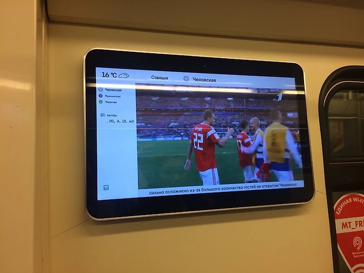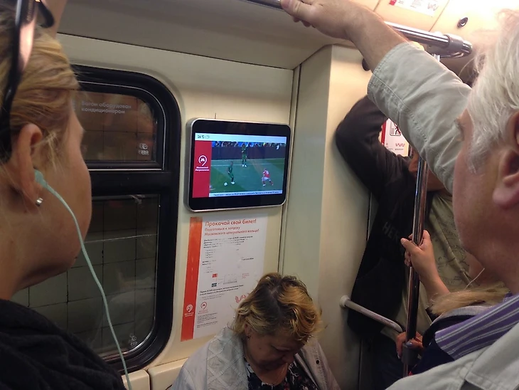На полутора тысячах экранах, установленных в вагонах в мае, обычно показывают московские новости: погоду, пробки, открытие выставок. Но сегодня там был чемпионат мира. Кажется, мы мечтали именно о таком месте футбола в нашей жизни.