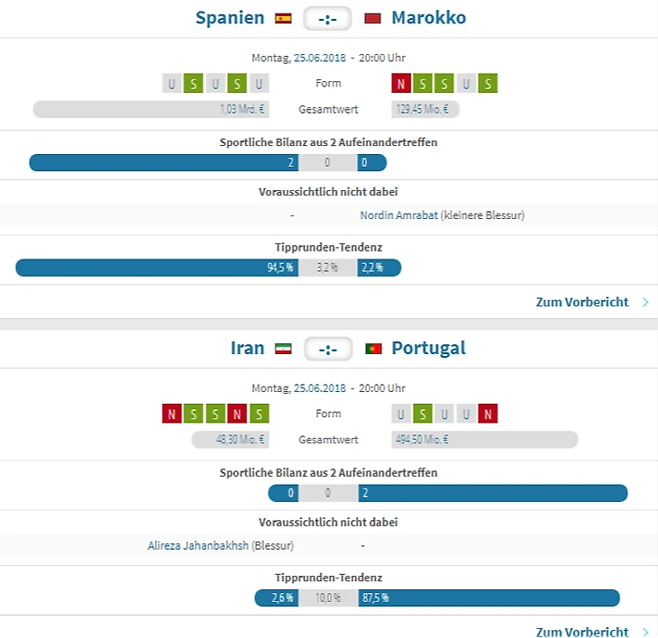Сборная Испании встретится со сборной Марокко, где будет явным фаворитом. В тоже время, сборная Ирана будет встречаться со сборной Португалии. И вот тут,становится интересно. Португальцы-явный фаворит в противостоянии с иранцами. При этом,я бы не был столь категоричен в оценке шансов, ведь сборную Ирана тренирует португалец Карлуш Кейрош,который очень хорошо знаком с португальским футболом и вполне может произвести ещё одну сенсацию, отняв очки у сборной Португалии. Ничья будет хорошим результатом для Ирана,но и выиграть они тоже могут.