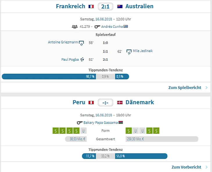 В последнем туре группового этапа встретятся австралийцы с перуанцами и датчане с французами. Шанс на победу сборной Перу-36%, на ничью 41%. Уверен, в победе перуанцев.