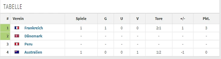В первом туре сойдутся сборная Франции со сборной Австралии и сборная Перу со сборной Дании.