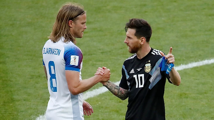 Всем известно, что нейтрализация Месси является одной из самых сложных задач для любого тренера, которому предстоит встреча с командой Лео. Хеймир Хадльгримссон и его «-соны» справились с этим на 10 по 5-ти бальной шкале. Минимум два человека незримо присутствовали рядом, когда Лео был без мяча. Стоило аргентинцу встретиться с «круглым», два, три, а то и четыре защитника моментально вырастали перед ним и перекрывали кислород. Как результат, 7 «обезмячиваний» лидера «альбиселесте». На корню пресекались стенки и забегания, к барселонской комбинации с передачей с левого фланга низом в угол штрафной исландцы тоже были готовы. С учетом игры нынешней Аргентины, решения этой проблемы было достаточно, чтобы обезглавить команду и избежать других неприятностей.