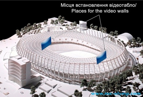 Для НСК «Олимпийский» изготовят два видеотабло, которые станут одними из крупнейших на стадионах Европы. Во время матчей и спортивных соревнований на двух цветных видеопанелях «Олимпийского» гости стадиона смогут следить за счетом, просматривать повторы острых моментов игры и получать информацию об игроках и составах команд. Видеопанели будут отражать любую видео-, графическую и текстовую информацию в высочайшем качестве, поэтому могут быть использованы также при культурно-развлекательных мероприятиях: во время концертов, выставок, ярмарок, презентаций. Цветные светодиодные (LED) видеотабло немецкого производства разместятся на крыше за футбольными воротами. Такое положение обеспечит хорошую обзорность панелей со всех уголков зрительских трибун. А способность отображать до 4,4 триллионов цветов гарантирует яркие и незабываемые впечатления от просмотра игры всем гостям НСК «Олимпийский». Обе панели, площадью 103,36 квадратных метров с аспектным соотношением экрана 16:9, будут самыми большими, установленными на стадионах Украины, и одними из крупнейших в Европе. Максимальный вес каждого табло вместе с монтажной конструкцией составит 9,5 тонн.
