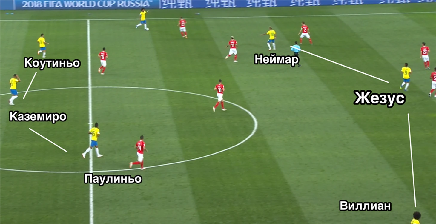 Тактика и действия сборной Бразилии против сборной Швейцарии (17/06/18)