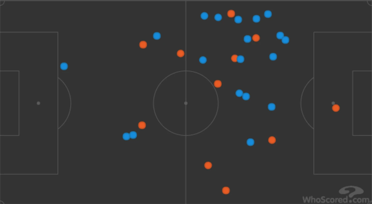 В связи с тем, что все игроки левого фланга номинально сильнее всех игроков правого фланга (простите фанаты Паулиньо), большинство атак все же создавались именно там.