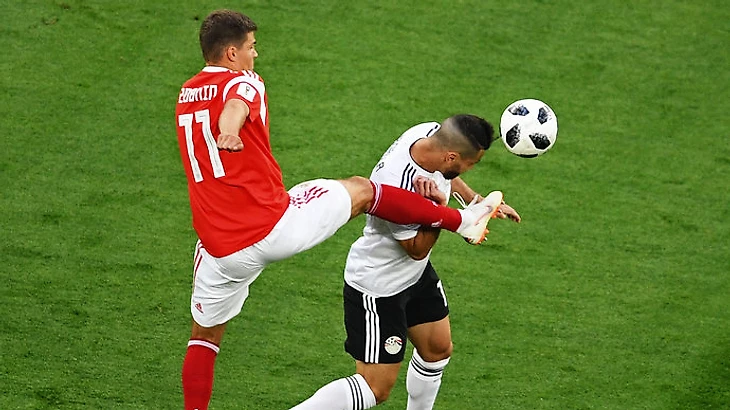 Как египтяне, так и россияне начали матч неуверенно, как будто побаиваясь друг друга. Весь первый тайм наша сборная владела инициативой, прессингуя и пытаясь создавать моменты. Комбинации подопечных Черчесова были не очень замысловатыми, но порадовало то, что футболисты не "наелись", как это обычно происходит после безуспешных усилий. Если выделять кого-то из игроков, то, на мой взгляд, лучшим был Артём Дзюба, который отчаянно боролся за каждый навес или заброс в сторону чужих ворот.