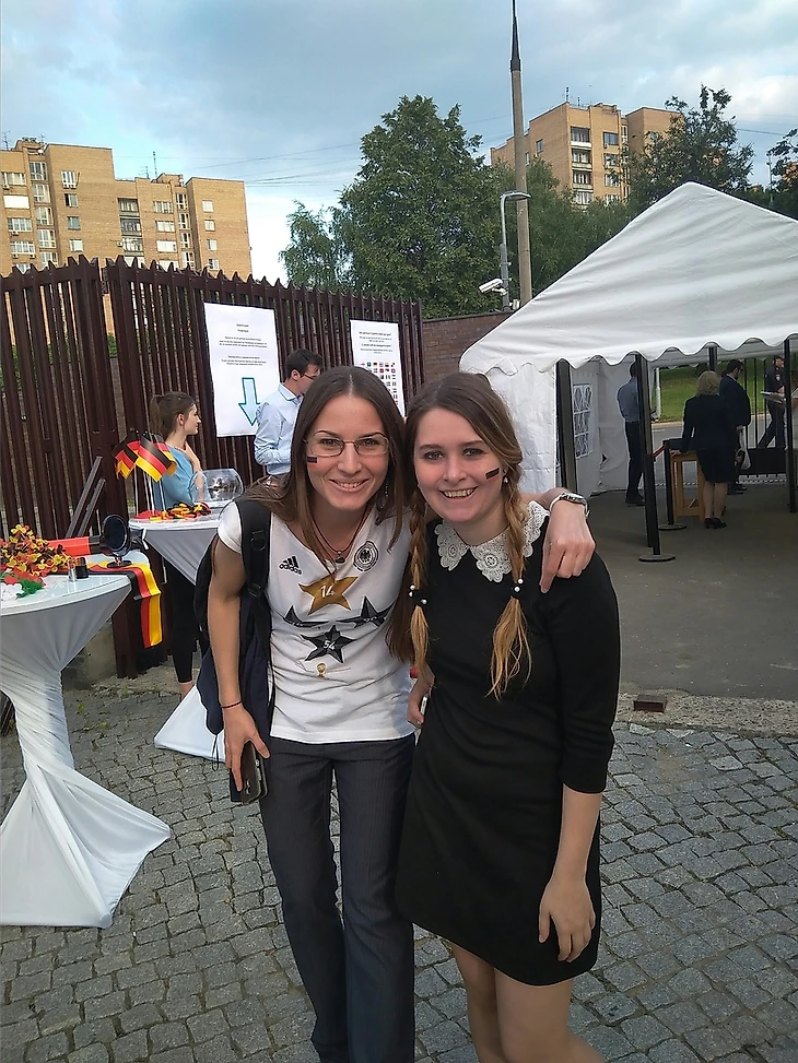 Более двухсот поклонников футбола и немецкой команды собрались 17-го июня в дипмиссии для совместного просмотра матча Германии и Мексики. Кроме самих сотрудников посольства, в закрытом мероприятии приняли участие представители МиД, официальных спонсоров Сборной Германии, а также ограниченный круг сотрудников масс-медиа России и Германии: ТАСС, Deutsche Welle и, как оказалось, «Бундеслига.Ру» в лице редактора блога Али Синецкой и авторов блога Арти Бундевицы и Софьи Кривошеиной.