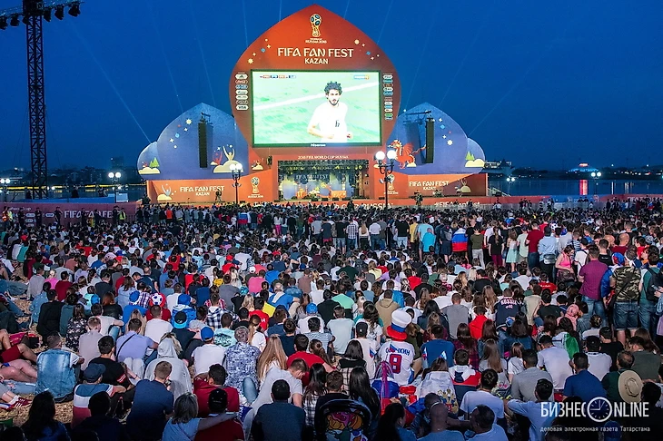 Не было никаких гор из стаканов, каких-то оригинальных песен, танцев и национальных шоу от гостей. В этот вечер только россияне были хедлайнерами и, кажется, их пришло больше, чем когда-либо в Казани болели за Россию в одном месте. Победа над Саудовской Аравией и историчность домашнего чемпионата мира заставили многих вылезти из квартир и идти не в бары и пабы, а к главным экранам города на месяц.