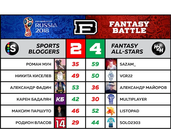В первом матче победу одержала команда пользователей со счётом 4:2. Лучшим игроком матча стал - sazam_, набравший 59 очков. По общему количеству очков счёт 254 - 271.