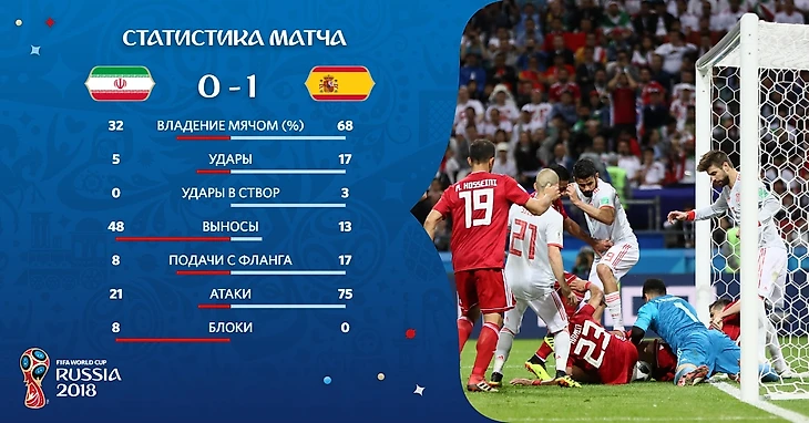 Первая неделя чемпионата мира завершалась матчем между сборными Ирана и Испании. Европейцам была просто необходима, что решать свои задачи после неприятного исхода в игре с португальцами. Иран же наоборот устраивала даже ничья, после вымученной победы над марроканцами, которым не везло весь матч. Фернандо Йерро сделал несколько изменений после первой игры, насытив центр поля более сбалансированными игроками, но оставил в нападении мощного Диего Косты, который должен был продавливать оборону соперника. Ну а иранцы выбрали обороняющуюся тактику, чтобы постараться сдержать натиск противника.