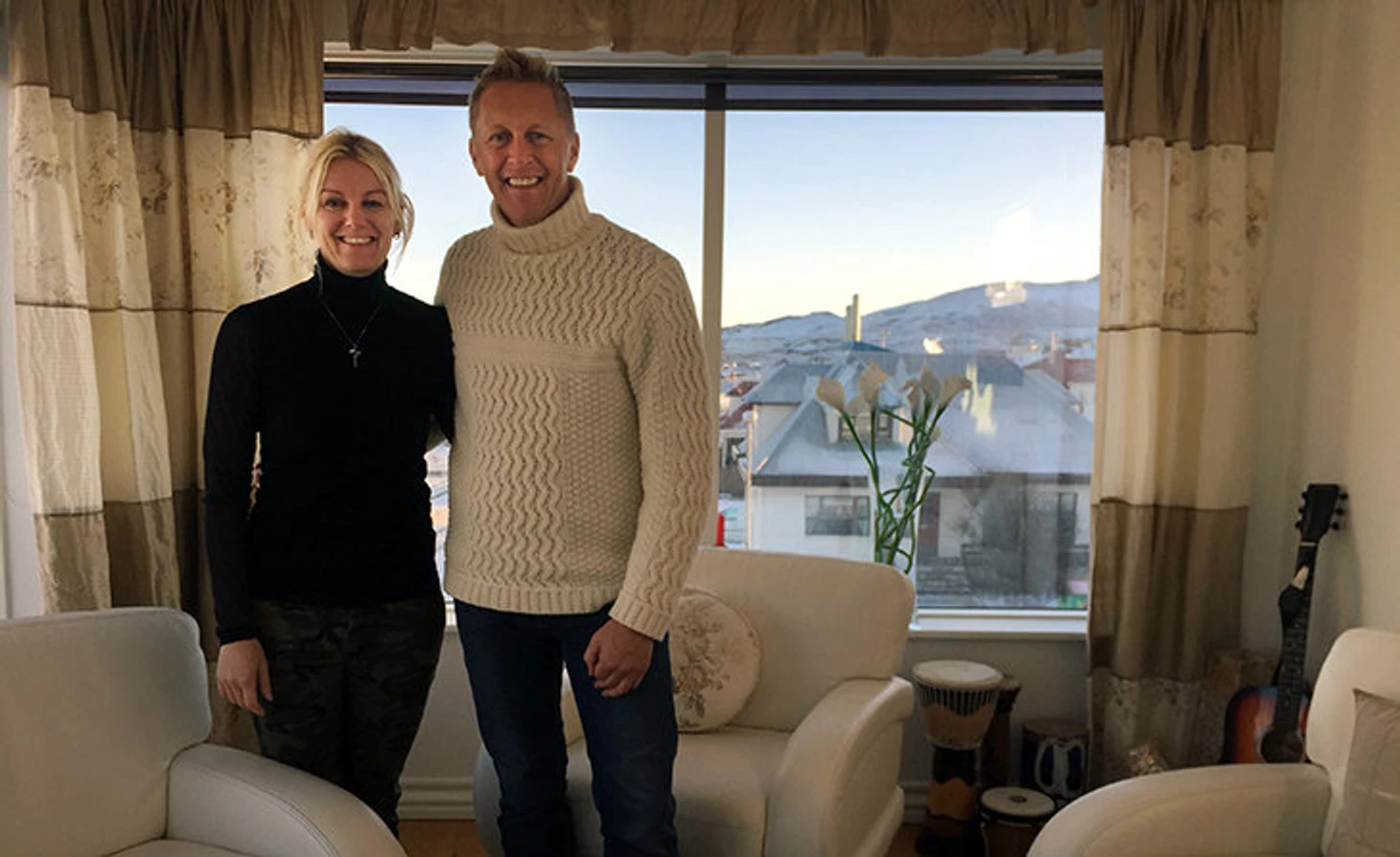Вот тут – тоже она, только 13 лет спустя. Если бы герои этого фото отошли чуть в сторону, можно было бы разглядеть вулкан Эйяфьядлайекюдль – до недавнего времени главную исландскую суперзвезду. Это он так пыхнул пеплом в 2010 году, что на несколько дней остановил авиасообщение во всей Европе. Вулкан находится на большом острове Исландия, но в южной его части, поэтому прекрасно виден из гостиной Хеймира.