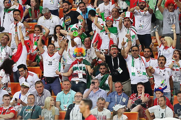 Все началось еще до стартового свистка. Иранцы, которые минимум на две трети заполнили 45-тысячную арену в Саранске, сначала проникновенно и дико громко спели гимн, а потом шизили так, как я не видел никогда в жизни. Их главная фишка – прыжки. Во время каждой серии пресс-трибуна реально содрогалась.