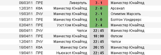 О составе. У гостей в этом плане есть проблемы, особенно учитывая защитную линию. Рафаэль, О’Ши и Флетчер участия в матче не примут, так же под вопросом находится участие Рио Фердинанда и Ван дер Сара соответственно. В остальном же все игроки должны подойти к матчу в тонусе, поэтому нам остается только ждать матча.