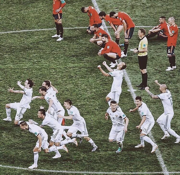 Последний пенальти...Сейф Игоря и бравые мучачос едут домой. Россия не просто грохнула Испанию, она грохнула весь испанский футбол. Поймите правильно, Испания все равно бы сломалась, даже если бы прошла в 1/4, но, трагедия для них и победа для нас, случилась именно 1 июля в Лужниках, поэтому она и символична! Испанская декада началась в 2008 году, победой над сборной России, а закончилась в 2018 на Чемпионате Мира в России........в матче против России