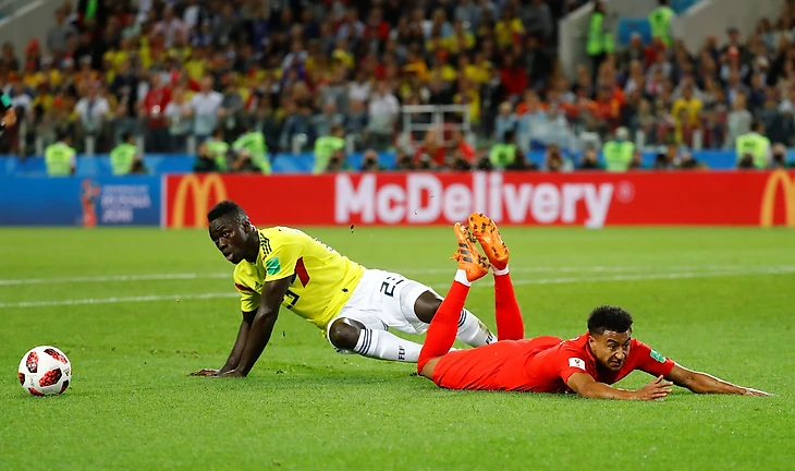 Вопреки ожиданиям, единственное чем прославилась Колумбия в этом матче – отлично организованный прессинг в середине поля и грамотная игра в обороне, главным творцом которой стал Йерри Мина. После пропущенного мяча - колумбийцы пытались атаковать, но все попытки казались сумбурными. Ни Кинтеро, ни Куадрадо, ни тем более Фалькао ничего в этом матче не показали – и в этом большая заслуга английской обороны. Да и гол колумбийцев совсем не читался по логике игры, после сумасшедшего удара Урибе – Пикфорд перевел мяч на угловой. Попал бы Урибе после своего удара в створ еще раз, будь у него еще 20 таких попыток? Сильно сомневаюсь. Тем не менее, угловой, Йерри Мина сравнивает счет – и становится для колумбийцев своеобразным Серхио Рамосом.