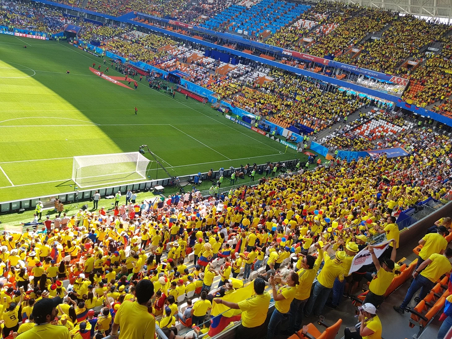 Колумбийцы были повсюду - они пели и плясали, свистели на третьей минуте, после красной карточки Калосу Санчесу. Их не смутил даже пропущенный гол. Они активно гнали своих футболистов вперед, и те сравняли счет после удара Кинтеро со штрафного. За 15 минут до конца матча, японцы все же вырвали победу, и разочарованию большей части стадиона не было предела.