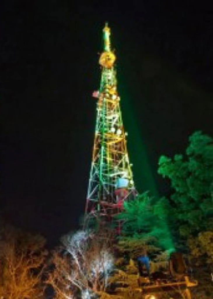 В честь приезда Бразилии на сочинской телебашне включили желто-зеленую подсветку.