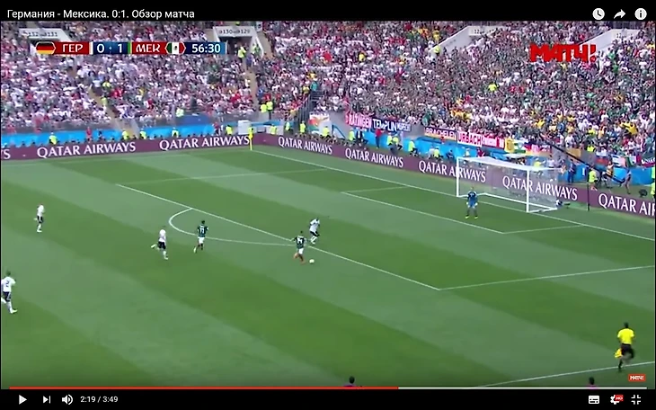 Еще один яркий эпизод матча с немцами. Но здесь Чичарито сделал ужасный пас на несколько метров, не позволив мексиканцам удвоить преимущество.