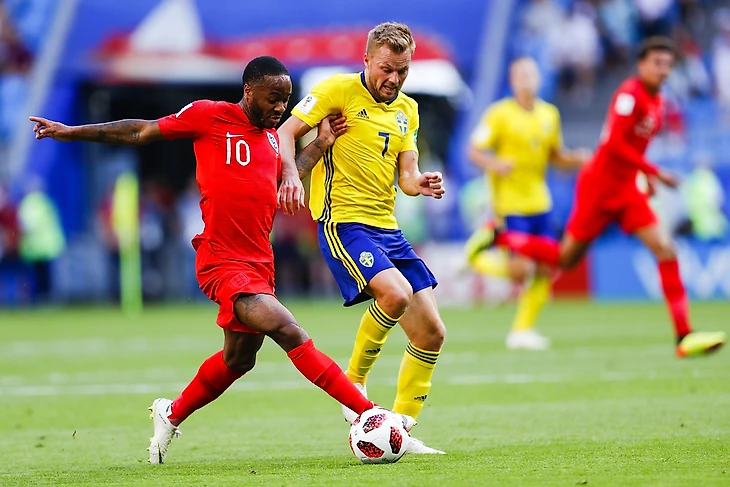 Встреча предсказуемо началась с активной атаки англичан, но подопечные Саутгейта за первые полчаса не смогли создать особо опасных моментов - один удар в створ на двоих за 45 минут. Хоть и шведы провели большую часть первого тайма в обороне, позволить прорваться англичанам они не дали. Исключением стал угловой на 30 минуте - Харри Магуайр сыграл блестяще после навеса в штрафную. Первая часть встречи по делу осталась за англичанами: они были острее, интереснее и гораздо решительнее; минимум бесполезных передач - всё и вся вперед.