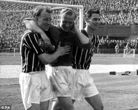 А в Англии он стал нечто большим. В 1955 году Манчестер Сити вышел в финал английского кубка. Пропустив гол уже на 45-й секунде матча от Джэкки Милберна, Манчестер, имея после травмы защитника на одного игрока меньше, нашел в себе силы отыграться, но во втором тайме пропустил еще два гола.