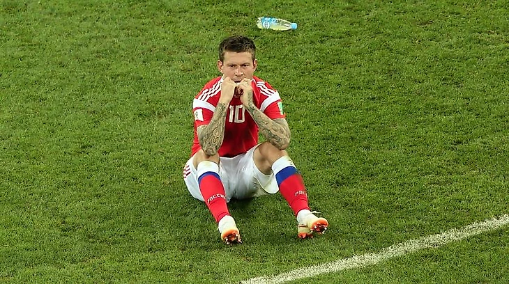 Фёдор Смолов был вызван в состав сборной России, как 100% игрок стартового состава, распиарен средствами массовой информации и специалистами, как главная звезда и "ударная" мощь сборной. Ну а как могло быть иначе если за "Краснодар" с сезона 2015/16 форвард стабильно забивает больше 10 голов, что для российских форвардов уже является достижением и признаком класса и является самым результативным Российским игроком. Но в сборной он совсем другой, на его счёту 36 игр и 12 забитых мячей. Причём 10 мячей забиты в товарищеских играх, 1 мяч в отборочном цикле к евро2016 в ворота Лихтенштейна и гол в ворота Новой Зеландии на Кубке Конфедерации прошлого года. Он просто не подходит под рисунок игры сборной. Но у него было безграничное доверие Станислава Черчесова, но он им не сумел воспользоваться. На ЧМ он провёл 5 матчей или 219 минут, за которые он нанес два удара, один из которых в створ ворот, совершил 2 отбора, 6 подборов и перехватов мяча, совершил 27 потерь мяча. Не самая лучшая статистика для форварда. Матч открытия на ЧМ должен был придать ему уверенности, но за представленные ему 65 минут встречи организовать ничего стоящего ему не удалось. В отличии от вышедшего на замену Артёма Дзюбы, после чего видимо Фёдор совсем "опустил руки" и понял, что в старте он больше не выйдет, но и не частые выходы на замену уверенности ему не прибавило. А не забитый пенальти в ворота Хорватии может его "подкосить" окончательно. В адрес Федора Смолова, в интернете конечно есть много негатива и т.д. И давайте будем честны перед собой, что никто из нас Субашичу бы не забил, это во дворе мы все герои, которые не промахиваются с пенальти, а если и промахиваются, то ничего страшного, т.к. "корову" мы не проиграли, а завтра мы обязательно у этих пацанов возьмем матч реванш. А у этих парней, которые бились с Хорватией на переполненном стадионе в 40 тыс. человек матч реванш может состояться не раньше чем через 2-4 года, на ЧМ или ЧЕ. Критиковать Федора нет никого смысла, его поведение после матча, лежание в центре поля, наверное лучший ответ критикам, даже не представляю, что в тот момент творилось у него в голове. Но эта сборная и все игроки без исключения вызывают только чувство уважения, команда действительно билась, боролась и переживала, а не как в 2016 году весело проводила время после вылета с ЧЕ в Ницце или Монако.