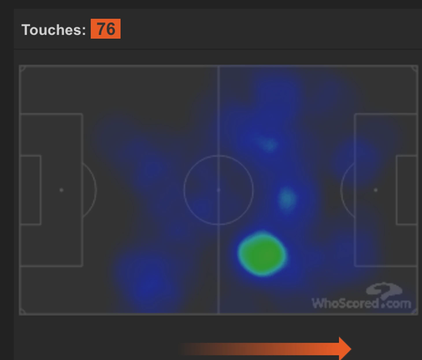 Через мгновение Кевин снова пробежал все поле и встретился с мячом уже на подходе к штрафной площадке. Снова таки, восхищаюсь тем, как он после таких забегов умудряется принимать столько взвешенные решения