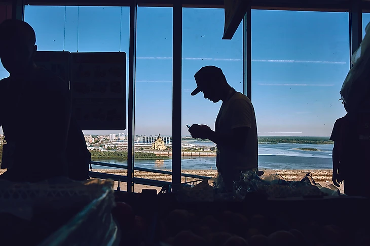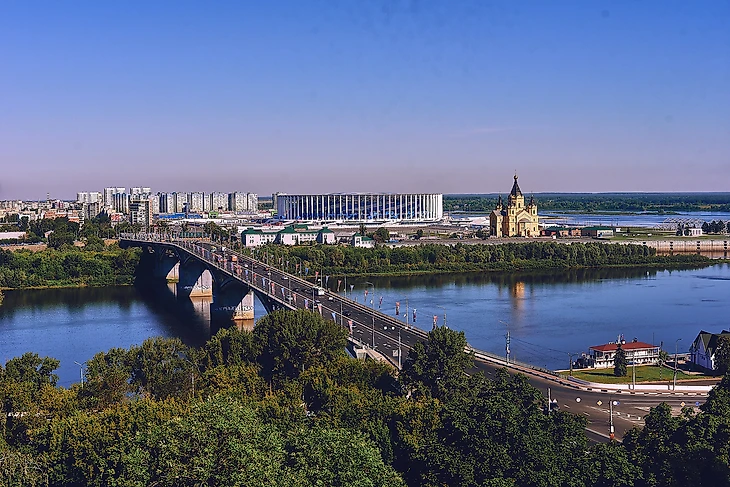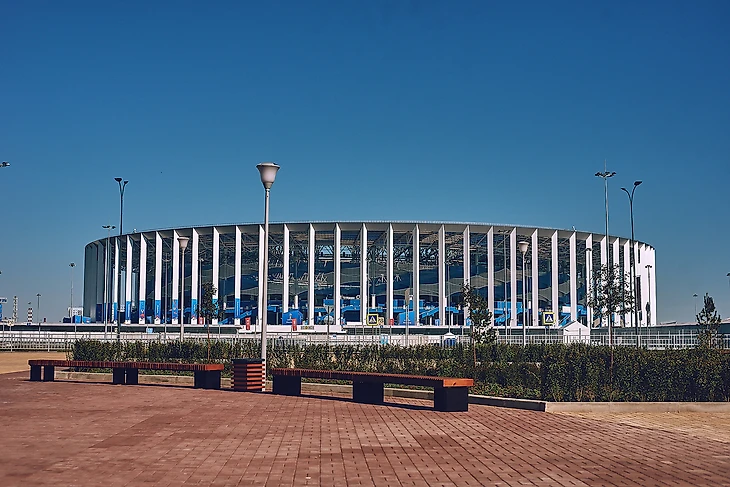 Так как с бесплатным поездом у нас не получилось, то решено было добираться через Нижний Новгород, который, к слову, также принимает Мундиаль. Здесь мы были несколько утренних часов, за которые успели погулять, увидеть город с высоты и оценить архитектуру футбольного стадиона.
