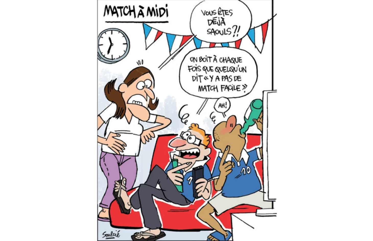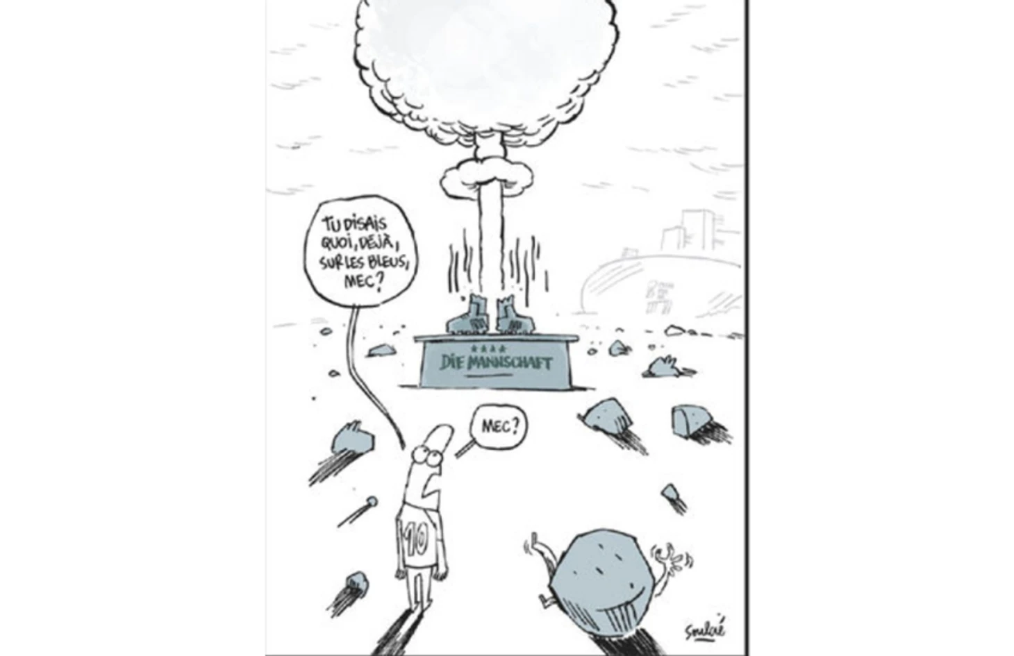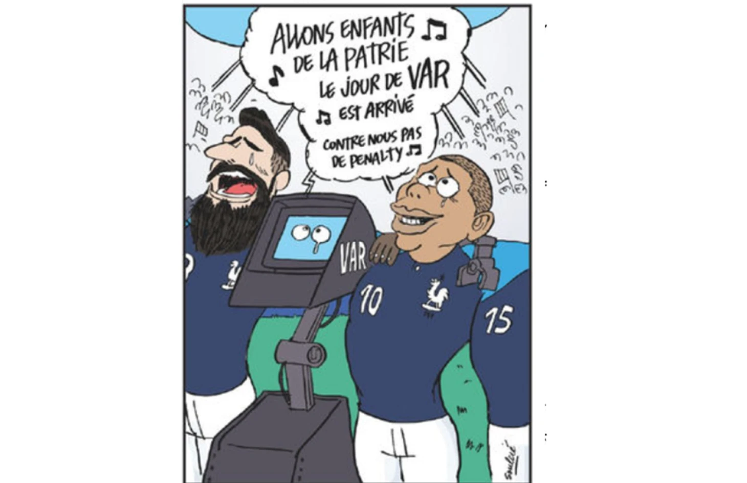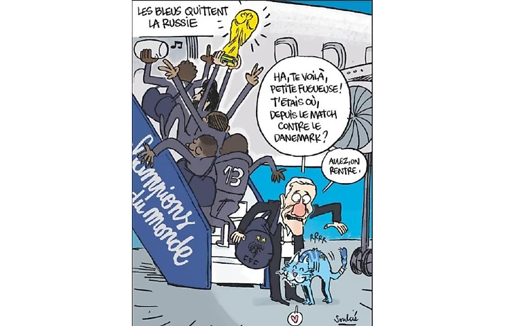 Ведущее французское спортивное издание «L`Équipe» опубликовало серию карикатур, отражающую детали победного пути подопечных Дидье Дешама на чемпионате мира. Надо отдать должное самоиронии (или цинизму?) художников. (Галерея содержит эпизодическую сцену табакокурения. Минздрав России и Франции предупреждает: курение вредит вашему здоровью. Гугл на запрос по теме сухо сообщает, что ДД не курил и не курит).