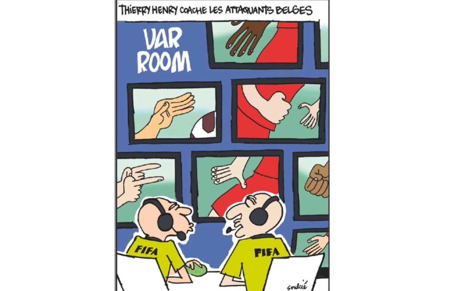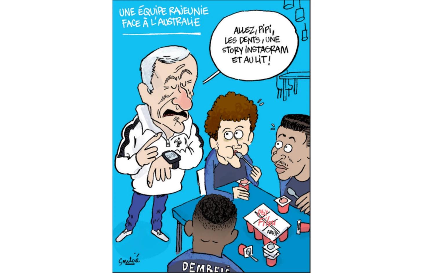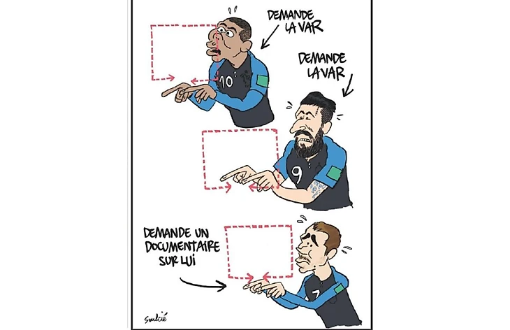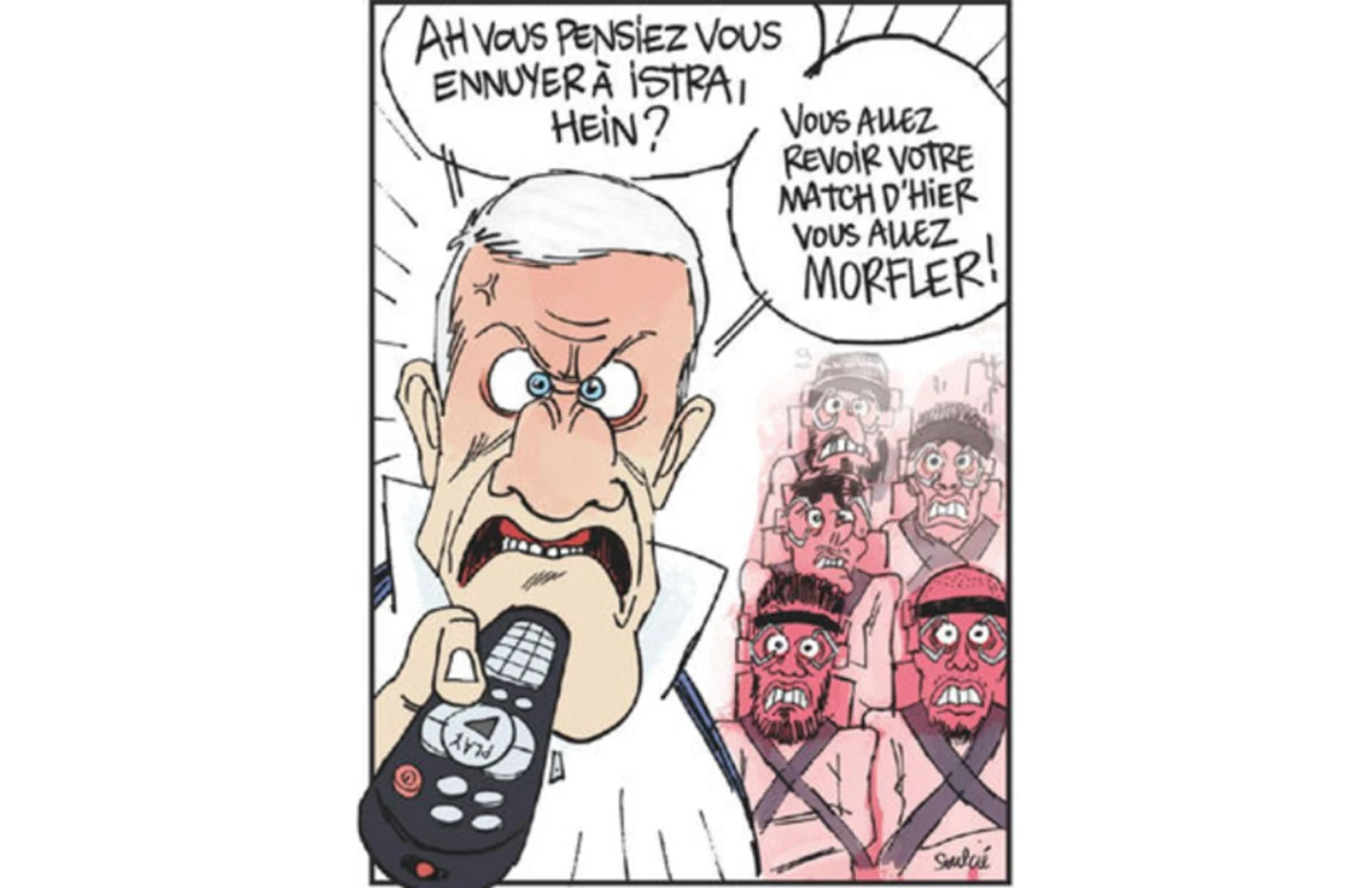 Ведущее французское спортивное издание «L`Équipe» опубликовало серию карикатур, отражающую детали победного пути подопечных Дидье Дешама на чемпионате мира. Надо отдать должное самоиронии (или цинизму?) художников. (Галерея содержит эпизодическую сцену табакокурения. Минздрав России и Франции предупреждает: курение вредит вашему здоровью. Гугл на запрос по теме сухо сообщает, что ДД не курил и не курит).