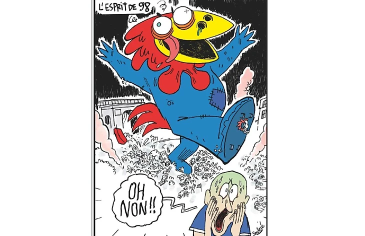 13 июля. Дух победы на ЧМ-1998 бродит по Парижу. Возвращение Футикса? «О, нет!»- восклицает в духе Мунка (неопознанный) персонаж в нижнем углу.