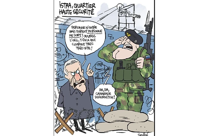 24 июня. Французы живут в Истре в полном (чрезмерном?) покое. Истра, квартал повышенных мер безопасности. Дешам охраннику: «Никого не впускать! А ГЛАВНОЕ – никого не выпускать! Будьте бдительны, кое-кто из них очень быстро бегает!» Охранник в ответ: «Да, да, товарищ Дидьедович!»