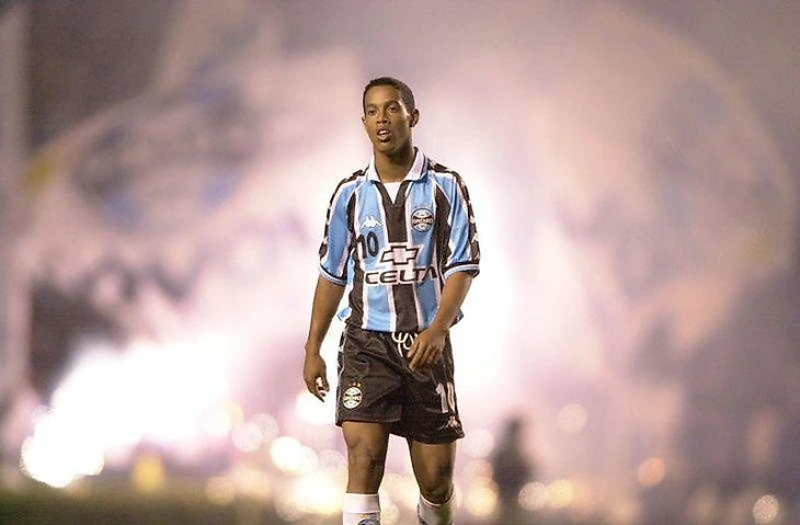 Юный Роналдиньо в своём первом профессиональном клубе — бразильском «Гремио» за которую он забил 82 гола за 142 матча, перед тем как отправиться в Европу, 1999.