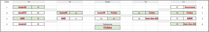 Amir_Han_001 естественно выиграл свою пару в кубке и пошел дальше, также победы одержали f1shka, GAD и kozim98