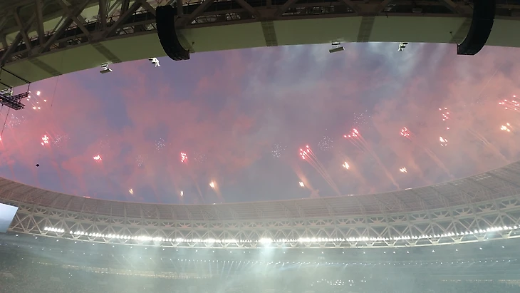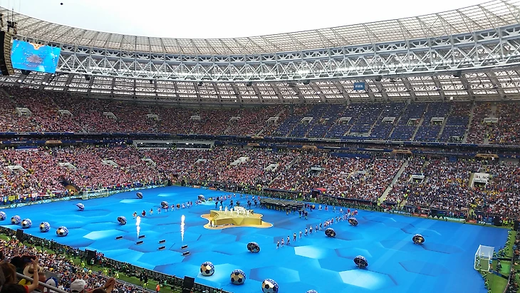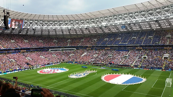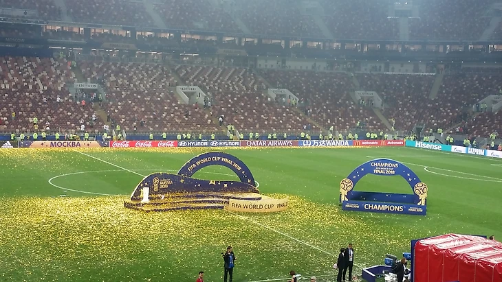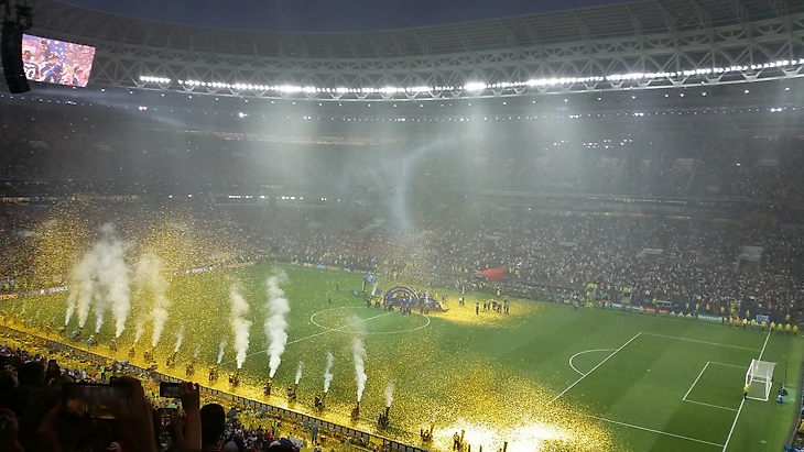 Тем временем, Лам принес чемоданчик с кубком, Водянова торжественно семенила рядом. У меня мелькнула мысль, что Льорис будет вот так же выносить его через четыре года жаркой катарской ночью. Бразильцы, сидевшие справа от меня, не сомневались – кубок будет выносить Модрич! Когда заиграла Марсельеза, я случайно подпела пару тактов, потому что знаю слова – и мои соседи сразу вычеркнули меня из всех списков. Это они зря. Марсельеза – хорошая штука, французов я увидела и услышала только в момент, когда заиграл их гимн – оказывается, они таки были на стадионе. И очень дружно пели, молодцы. Почему не пели свой гимн хорваты – остается для меня загадкой. Их визуально было больше, намного больше, целая трибуна D.