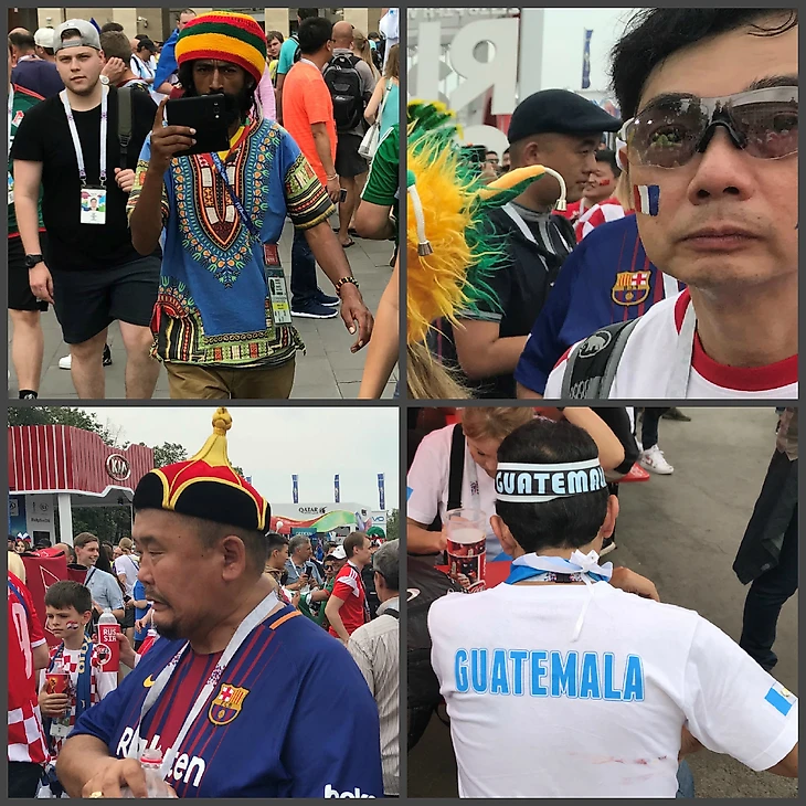 Многообразие болельщиков из разных стран, повторюсь, поражало воображение. Кажется, здесь были представители всех стран, что участвовали в мундиале, да и тех, что не участвовали.