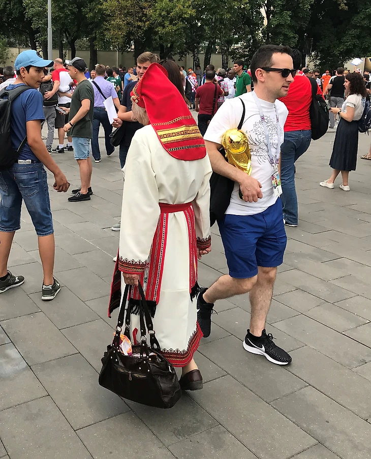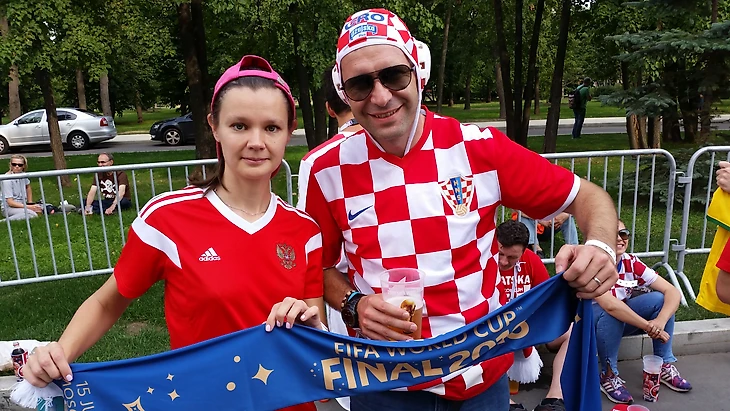 Один такой хорват ткнул меня ласково в плечо – мол, вы же не обижаетесь, правда? Будете за нас сегодня болеть? Я дипломатично ответила, что Хорватия в финале чемпионата мира – это грандиозно. Сфоткались. Болеть после нашего четвертьфинала я пока еще ни за кого не способна.