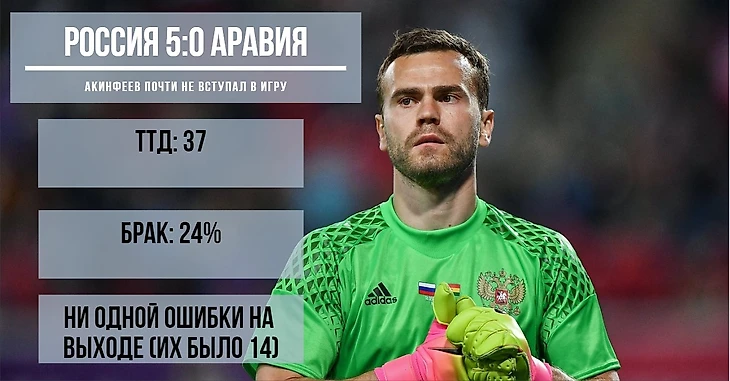 В матче открытия чемпионата мира против Саудовской Аравии у Игоря почти что не было работы - саудиты не смогли нанести ни одного удара в створ ворот. Зато они активно прессинговали российских футболистов, которые постоянно просили помощи у своего вратаря. Акинфеев не скромничал, вынося мяч куда подальше со своей половины поля.