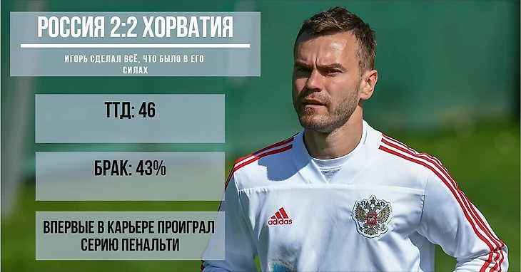 Они стали главными звездами страны заслуженно. Игорь вытащил 9 из 10 ударов в створ ворот, не считая 2 взятых пенальти в послематчевой серии. Дзюба обновил свой же рекорд по выигранным верховым единоборствам и забил гол с пенальти, который сравнял счёт в матче. После ухода с поля Артёма, точность передач Акинфеева резко упала.