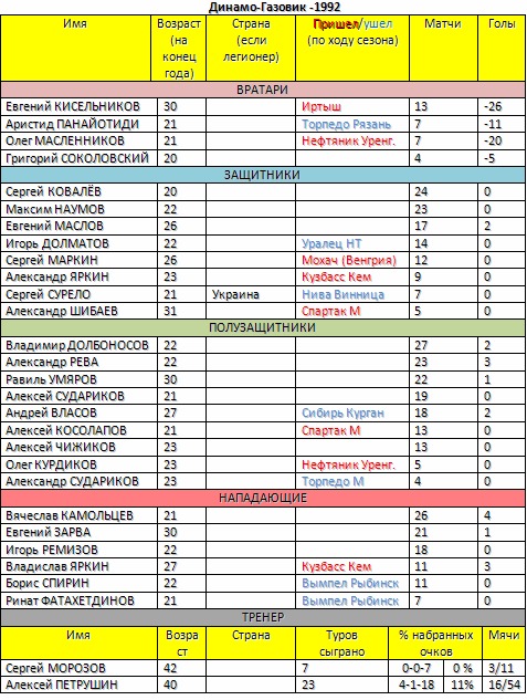 Состав "Дин-Газа" в сезоне-1992.