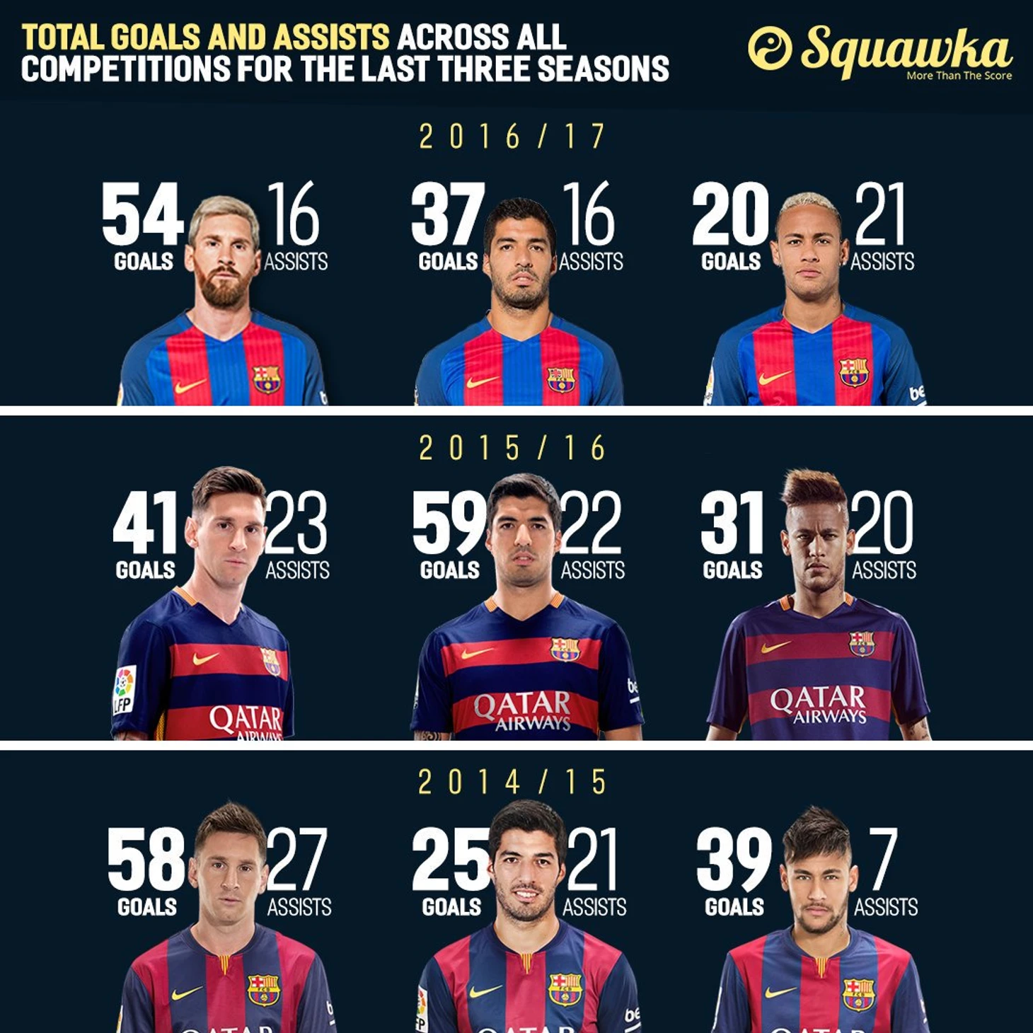 Цифры трио Месси - Суарес - Неймар от Squawka