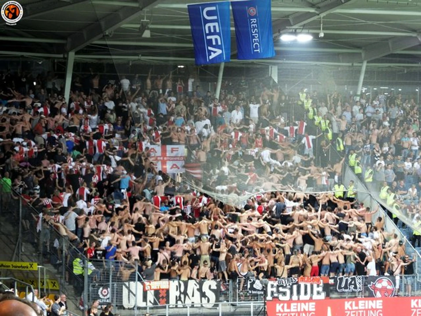 Первым таким противостоянием будет пара австрийского "Штурма" и амстердамского "Аякса". Фанаты "Аякса" - очевидный №1 в Голландии. Ультрас "Штурма" - вторые по активности в Австрии после недосягаемого венского "Рапида". Поэтому изначально эта пара выглядела крайне любопытно. Однако, реальность превзошла все, даже самые смелые ожидания.