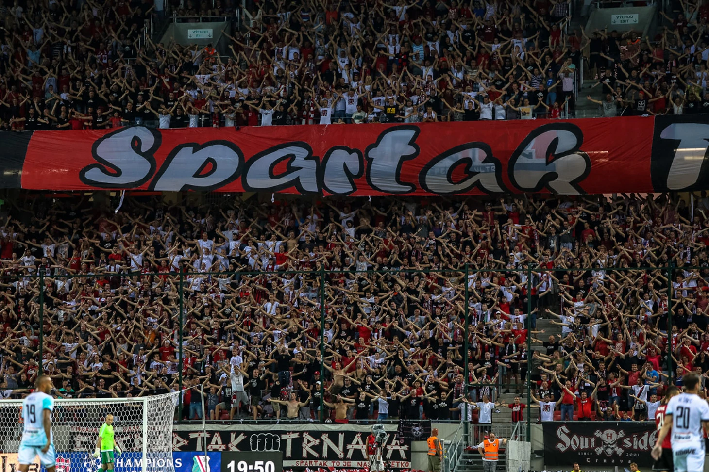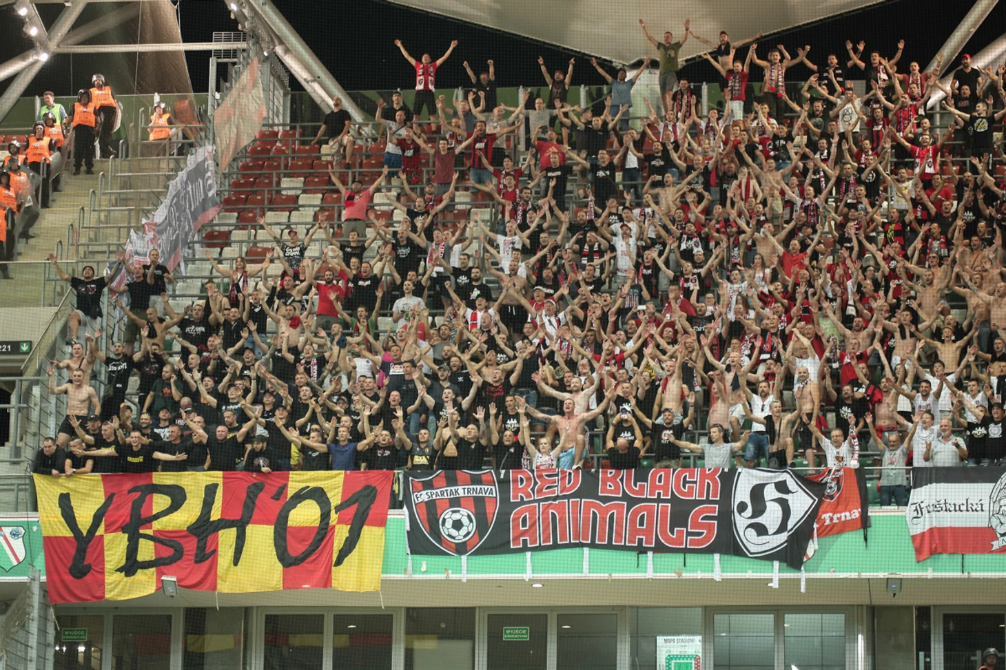 Фанаты словацкого "Спартака" в Варшаве тоже ничем не отметились. Это подтверждает тот факт, что самое интересное, что было в тот вечер на их секторе стадиона имени маршала Пилсудского, это баннер их польских друзей из стана "Короны" (Кельце).