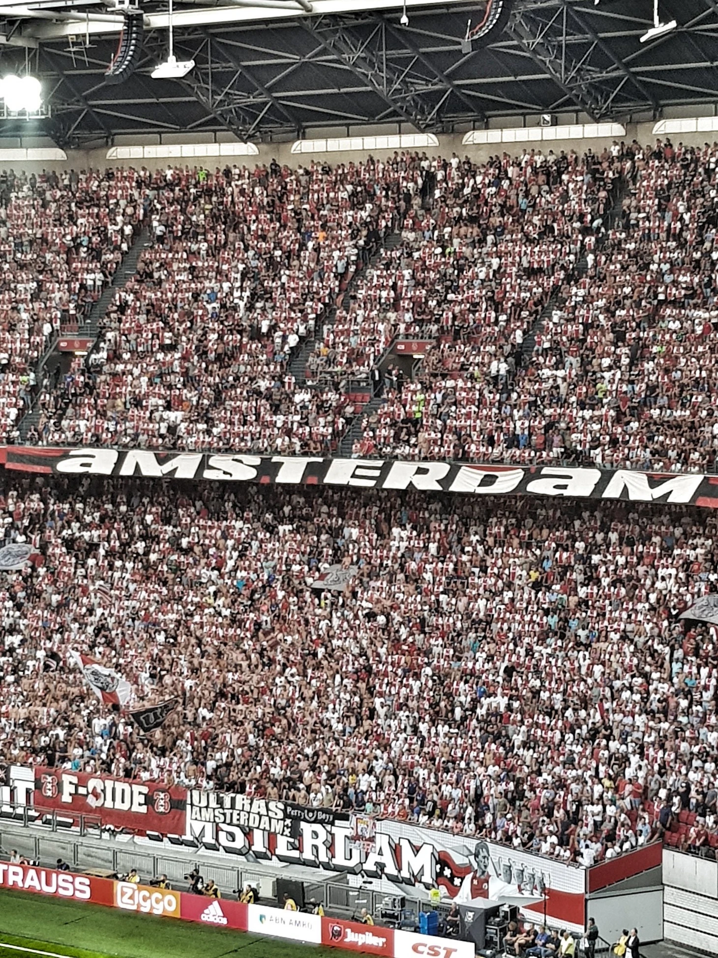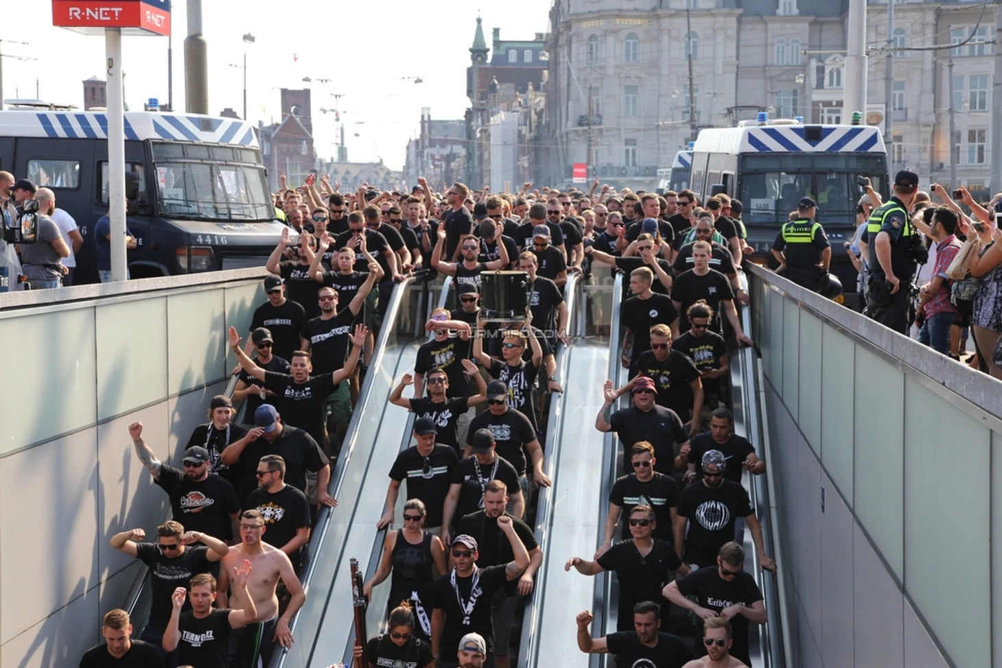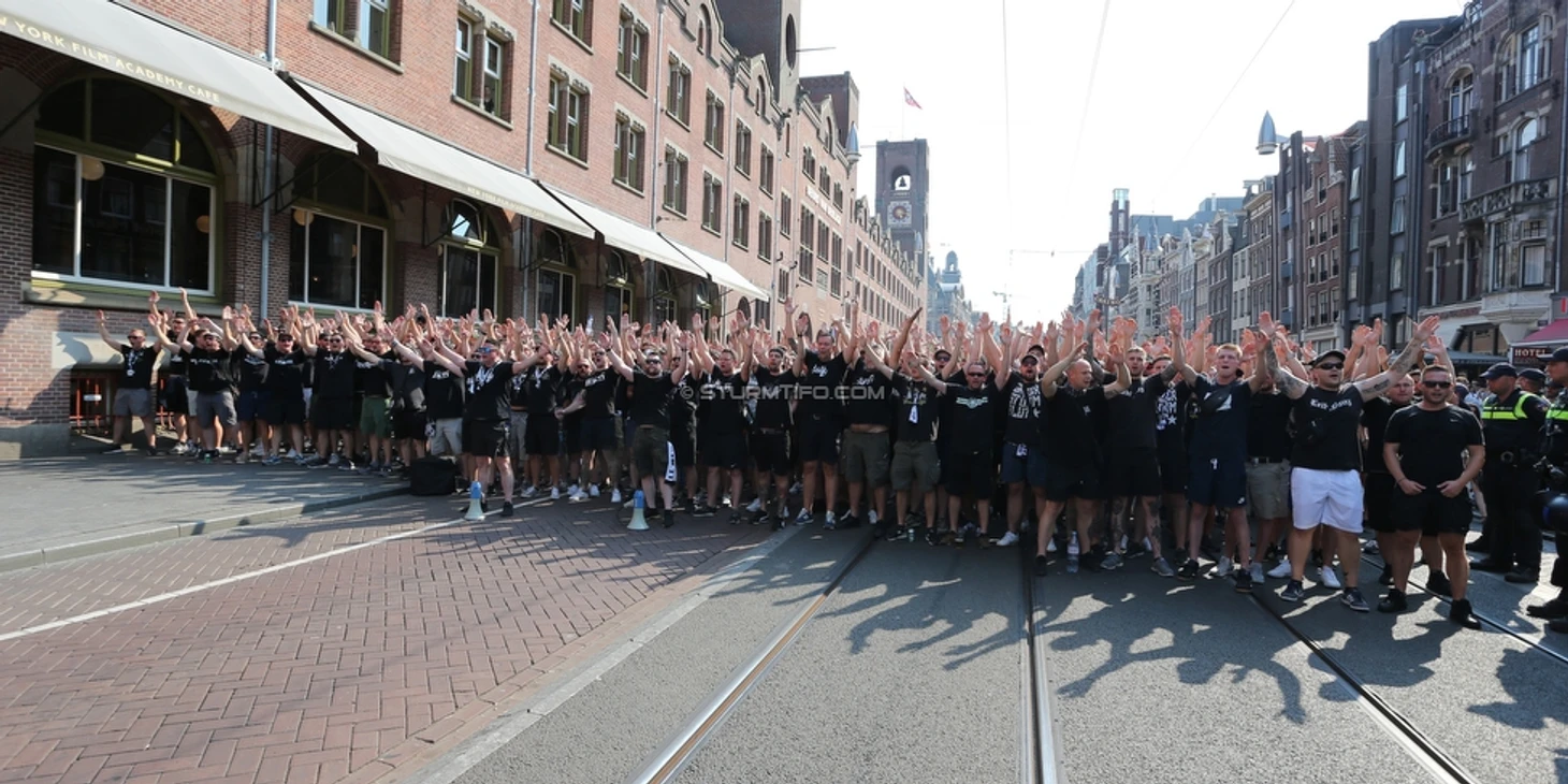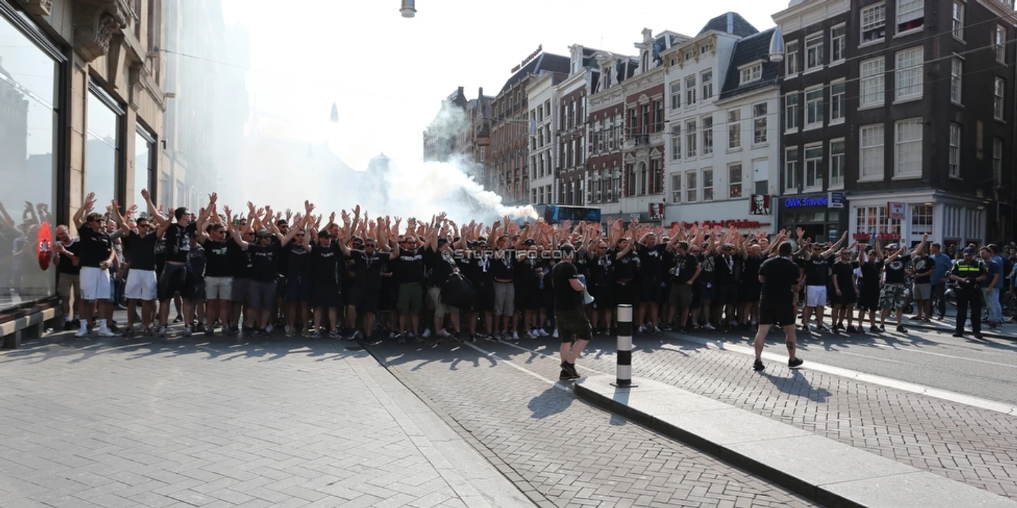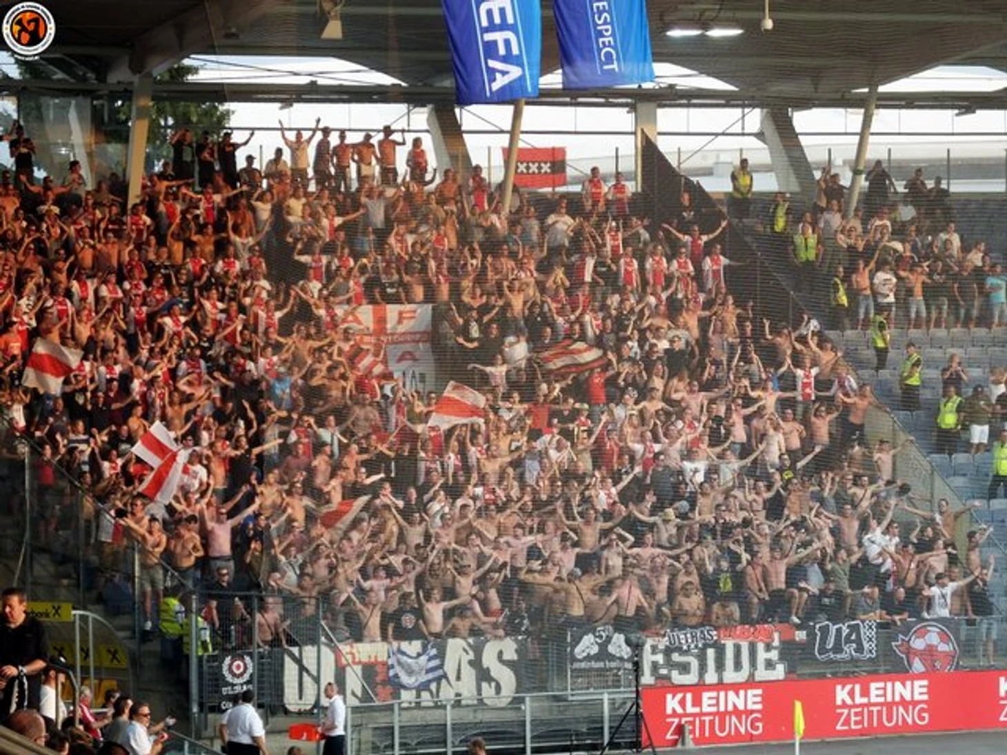 Первый матч проходил на "Амстердам Арене". Ультрас "Штурма" вывезли массовый состав в Голландию и забили гостевой сектор до отказа. Австрийцы в Амстердаме: