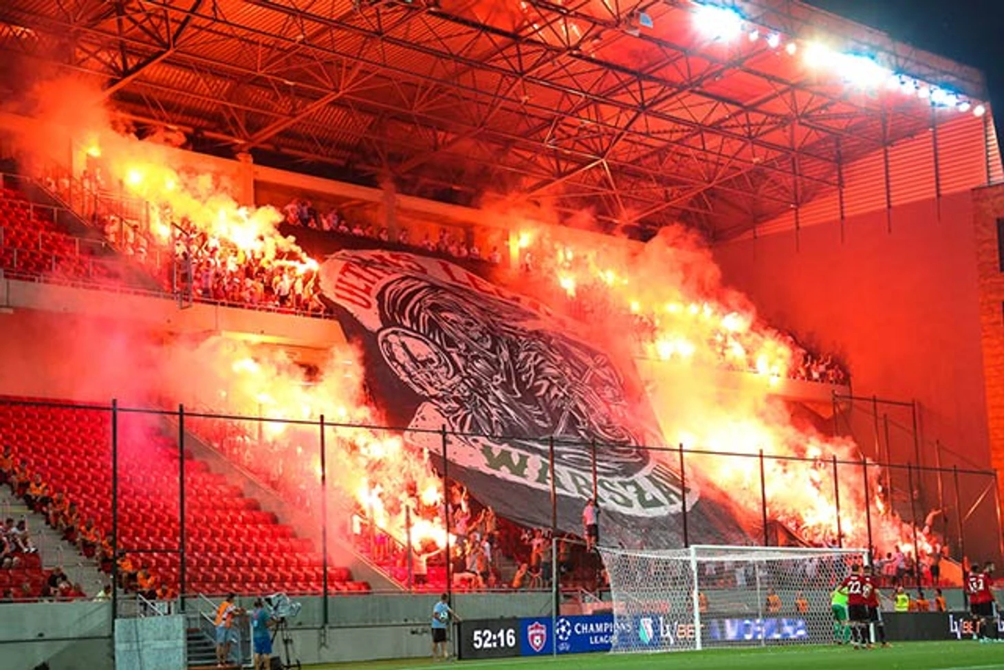 Эффектнейший кадр с того же матча между "Спартаком" из Трнавы и варшавской "Легией". За атмосферный футбол!