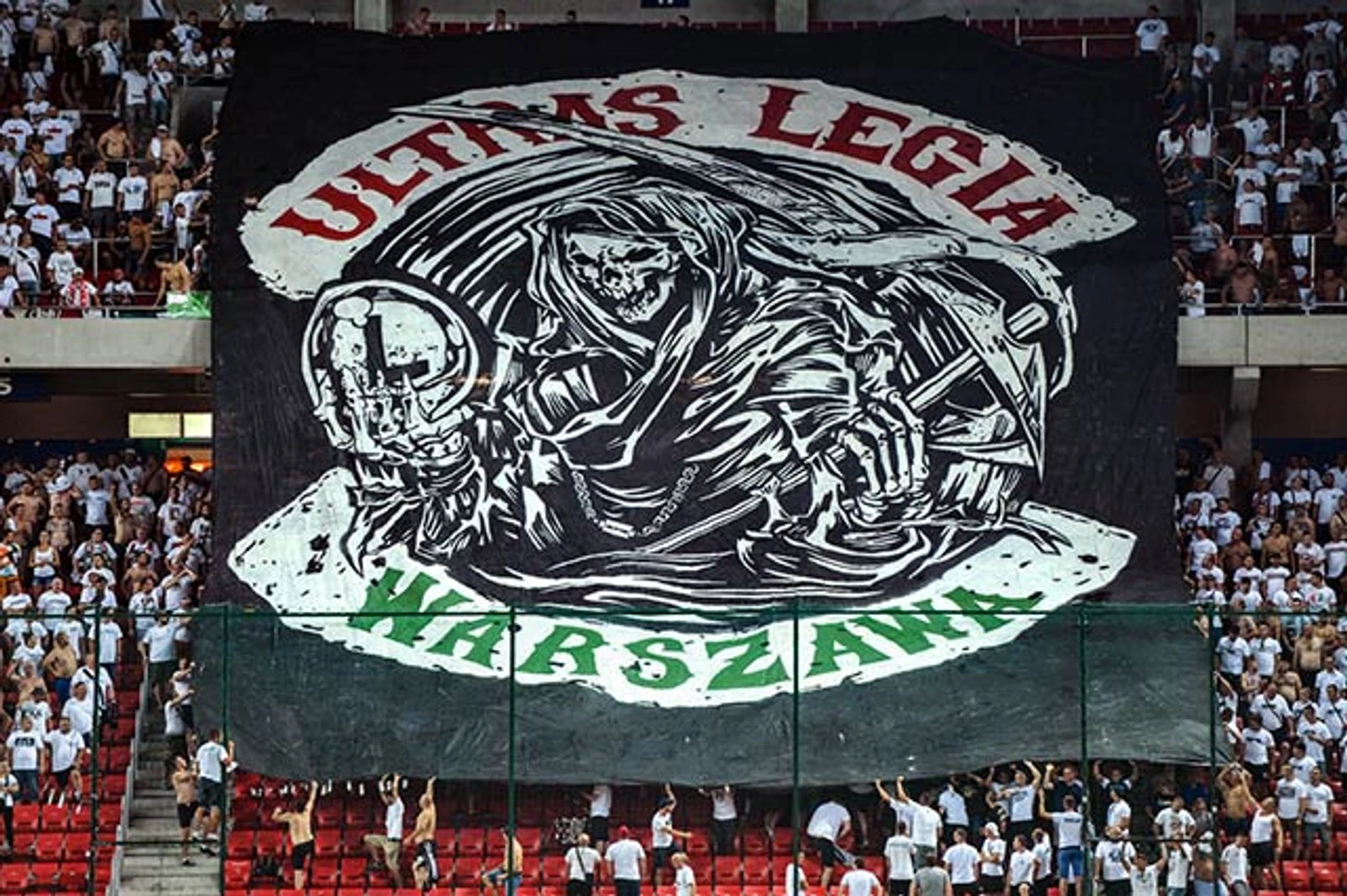 Ультрас трнавского "Спартака" тоже хотели себя показать всей Европе и к этому матчу сделали такой вот перфоманс. Обратите внимание, что и те, и другие в первую очередь прославляли не свои команды, а свои фан-движения - надписи "Ultras Spartak Trnava" и "Ultras Legia Warszawa" в перфомансах об этом прямо говорят. И я, кстати, не вижу в этом ничего плохого. А мантра "главное - поддержка команды", которую так любят в российском фанатизме, уже порядком поднадоела и устарела, так как никто не мешает убивать двух зайцев одновременно.